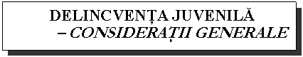 delincventa juvenila - a minorilor intre 14 si 18 ani care au savarsit cu discernamant o fapta care intruneste elementele constitutive ale unei infractiuni, in speta "delincventii minori";