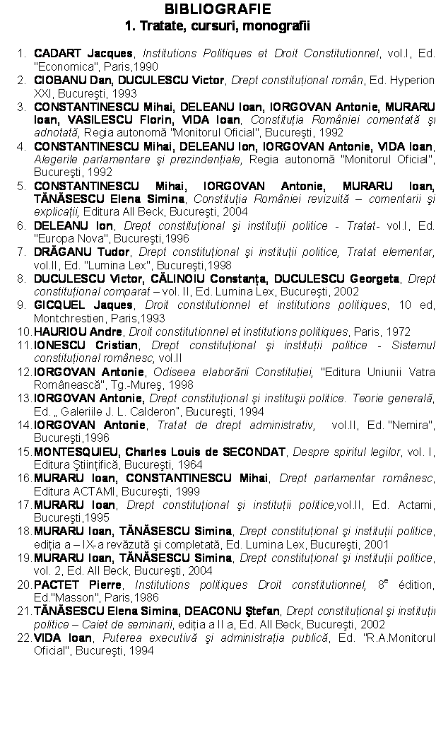 21. VRABIE Genoveva, Organizarea politico-etatica a Romaniei, Drept constitutional si institutii politice, vol.II, Ed. Cugetarea , Iasi,1996