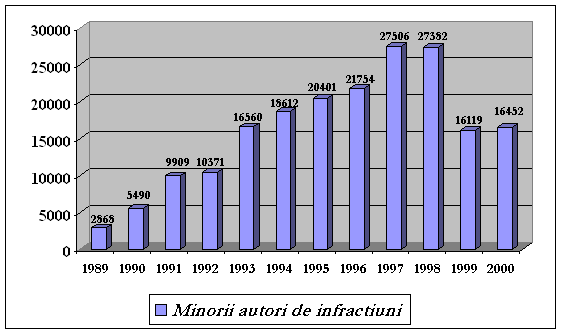 In urma realizarii unor statistici in ceea ce priveste numarul infractiunilor savarsite de minori in perioada 1989 - 1999 s-a constatat ca delincventa juvenila cunoaste in aceasta perioada momente de acalmie, dar si momente de explozie a infractiunii.