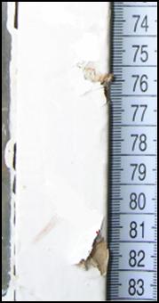 Foto nr. 8-9 Doua urme papilare relevate cu pulbere neagra si ridicate pe folie adeziva de culoare alba de pe paharul aflat pe masa din bucatarie (vezi sageata nr..din foto nr.). Cele doua urme au fost create de relieful papilar al degetului mijlociu (foto nr. 8), respectiv inelar (foto nr. 9), de la mana dreapta a numitului Mugur Ion fiul victimei.