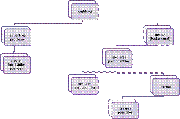 Ø se stabileste liderul de grup care trebuie sa conduca reuniunea spre o rezolvare a problemei prin colectarea de idei noi si alegerea variantei optime de solutionare;