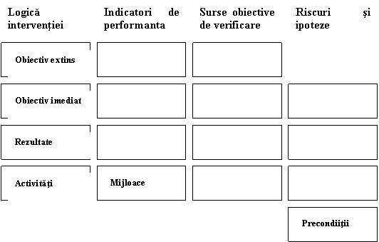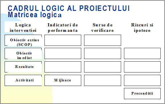 Formatul matricii logice din figura de mai jos sintetizeaza majoritatea elementelor pe care le include cadrul logic de abordare.