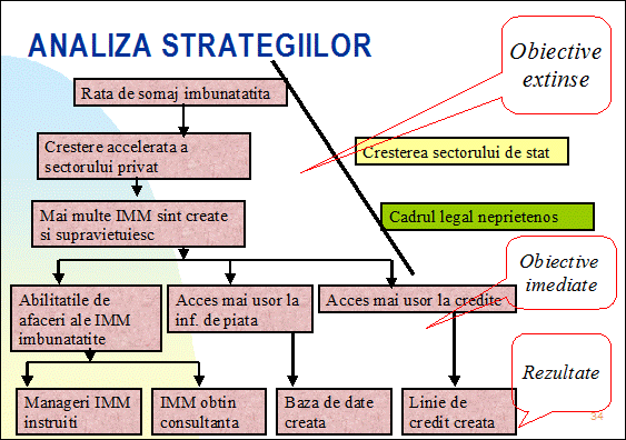 In arborele obiectivelor diferitele grupuri de obiective de acelasi tip formeaza o strategie. Va trebui sa alegem una sau mai multe dintre acestea pentru proiectul pe care il elaboram.