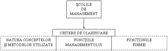Studiile in domeniul managementului se pot grupa in functie de natura conceptelor si metodelor utilizate cu precadere, de functiile managementului carora li se acorda prioritate si de functiunile firmei asupra carora se axeaza, in patru scoli sau curente principale: clasica sau traditionala, behaviorista sau comportista, cantitativa si sistematica (figura 2).