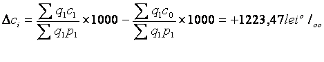 Pentru intreprinderile care comercializeaza o gama diversificata de produse, cu preturi individuale ce variaza in limite foarte largi, pentru efectuarea unor analize trebuie sa se cunoasca evolutia volumului valoric al vanzarilor si indicele preturilor (Ip) sau al volumului fizic (IQ) pe diverse structuri; informatiile fiind astfel valorificate in stabilirea valorii recalculate a cifrei de afaceri (Sq1p0), a cheltuielilor (Sq1c0) si a ratei medii a cheltuielilor (Sq1c0/Sq1p0).
