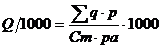 Qm reprezinta volumul productiei marfa, exprimata in unitati naturale in cazul productiei omogene, sau in mii unitati monetare pentru productia neomogena la fabricarea careia se utilizeaza un anumit material;