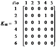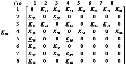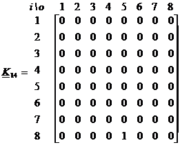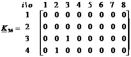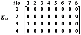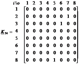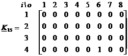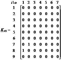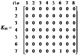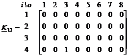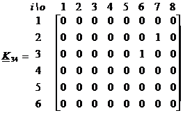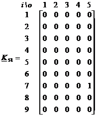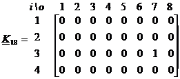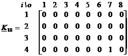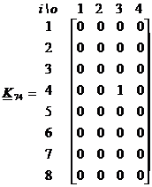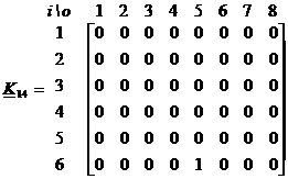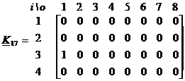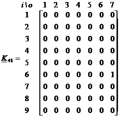 adica iesirea cu numarul 2 din subsistemul opt corespunde intrarii cu numarul 5 din subsistemul patru si deci toate elementele matricei vor fi zero cu exceptia celui aflat pe linia cinci si coloana doi.