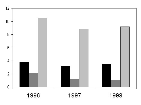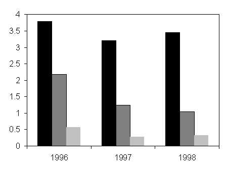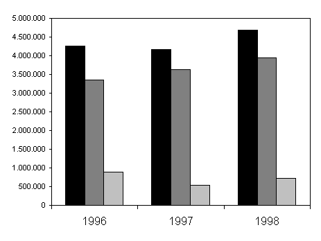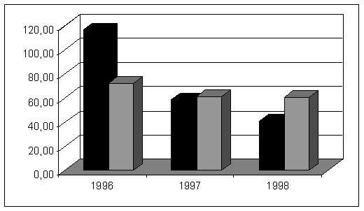 Creantele au scazut progresiv cu 27% in 2001 fata de 2000 si cu inca 23% in 2002 ceea ce a influentat favorabil fluxul de disponibilitati.