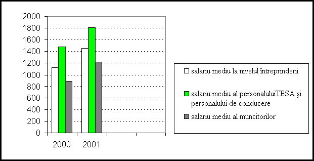 Se observa scaderea continua a numarului mediu de personal in perioada analizata, astfel incat acest numar inregistrat in anul 2001 reprezinta 84,97% din numarul personalului existent in anul 2000.