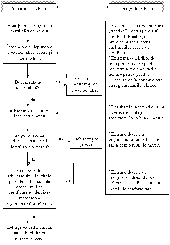 Desfasurarea procesului de certificare a produselor impune existenta unor conditii specifice corespunzatoare fiecarei etape (fig. 3).