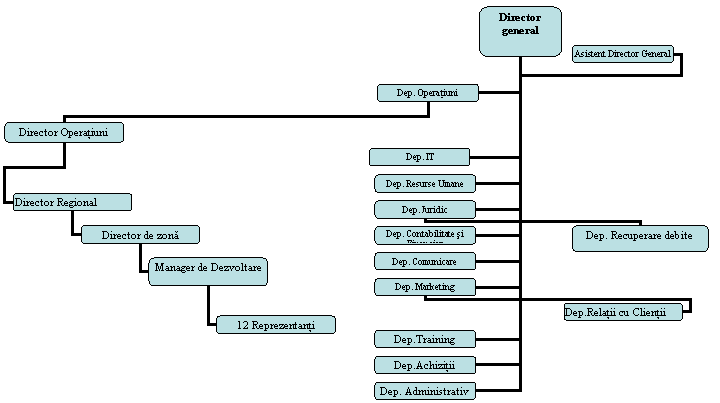 Fiecare sucursala este reprezentata de o persoana, iar sediul central de doua persoane.