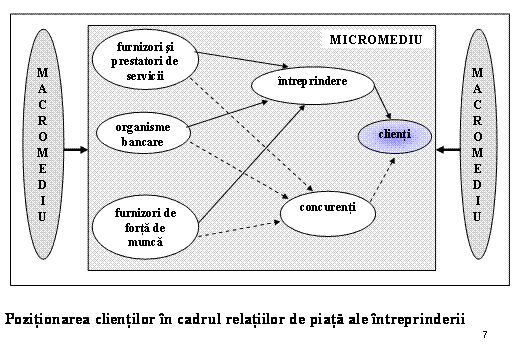 Clientii alcatuiesc cercul firmelor, institutiilor si al persoanelor individuale carora le sunt adresate bunurile sau serviciile intreprinderii. Reprezentand cea mai importanta componenta a micromediului intreprinderii, clientii ocupa un loc central in tematica studiilor de marketing, acestea fiind axate pe cunoastere nevoilor, a cererii, a comportamentului de cumparare si de consum.