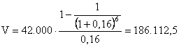 Exemplu: O inventie este protejata de un brevet ce aduce o incasare anuala de 50.000 lei. Durata de viata este de 6 ani. Daca se foloseste o rata de actualizare de 6%, iar cota de impozit pe profit este de 16 %, valoarea brevetului este: