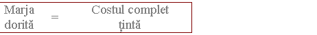 costurile tinta necesare, bazate pe formula costurilor complete, sunt evaluate prin decuparea din pretul de vanzare a unei marje dorite a profitului cu luarea in considereare a unei cote risc (componenta a costurilor);