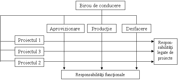 Matricea manageriala a fost creata ca raspuns scurt si eficient proiectelor ce trebuiesc indeplinite in astfel de conditii. Figura 6.3. ilustreaza in spiritul matricii manageriale ca oamenii din diferite subdiviziuni ale organizatiei sunt repartizati sa lucreze la proiectele chiar si in timpul indeplinirii acestora. Managerul proiectului si membrii echipei pot fi repartizati pentru a lucra cu un proiect timp partial sau chiar timp complet.