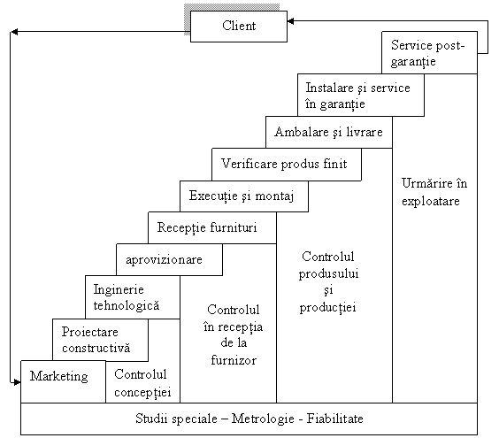 Autorul acestui concept a evidentiat prezenta studiilor speciale, a activitatii de metrologie si de fiabilitate pe intreaga traiectorie de realizare a produsului.