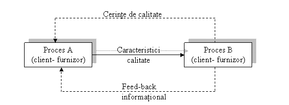 Fiecare compartiment sau lucrator trebuie sa se considere ca fiind un client intern si in acelasi timp un furnizor intern in raporturile sale cu celelalte compartimente/lucratori. In ipostaza de client, acesta trebuie sa ofere furnizorului din amonte toate informatiile necesare care sa faciliteze definirea clara a cerintelor. Pe de alta parte, trebuie sa se informeze asupra posibilitatilor acestuia privind satisfacerea cerintelor definite. In ipostaza de furnizor, acelasi compartiment sau lucrator trebuie sa-si informeze clientul din aval asupra posibilitatilor de care dispune si trebuie sa se asigure ca-i ofera ceea ce doreste. In aceasta dubla ipostaza, fiecare lucrator isi poate imbunatati propria activitate, in masura in care urmareste sa satisfaca cat mai bine cerintele clientilor si asteptarile furnizorilor sai interni, ceea ce are ca efect o imbunatatire continua a proceselor din intreprindere.