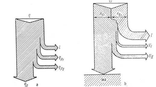 Fig. 8.6. Diagrame de bilant: a - bilant energetic; b - bilant exergie-anergie