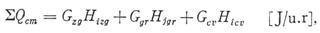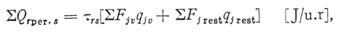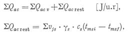 unde vjs este volumul materialului din stratul izolator s, corespunzator elementului de suprafata Fj rest, in m3; gs - greutatea specifica a materialului .din stratul s, in kg/m3; cs - caldura specifica medie a materialului din stratul s, intre temperaturile tmsi si tmsf, in J/kg0C; tmsi, tmsf - temperatura medie a stratului s in momentul initial al perioadei de racire, respectiv temperatura finala, in 0C.