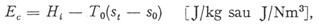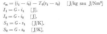 i1, i0 este entalpia materialului in starea 1, respectiv in starea de referinta, in J/kf sau J/Nm3; s1; s0 - entropia materialului in starea 1, respectiv in starea de referinta, in J/kg K sau J/Nm3 K; T0 = temperatura absoluta a starii de referinta, in K.