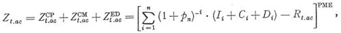 Daca se urmareste modelarea in conceptie sistemica a unui bilant energetic, general, pe baza cheltuielilor totale actualizate, Zt.ac, se pot utiliza urmatoarele relatii: