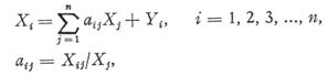 unde Xij reprezinta parte din productia ramurii i consumate productiv in ramura j in perioada t; Xj - productia totala a ramurii j.