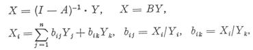 unde A este matricea coeficientilor tehnici; Xi - productia totala a ramurii i; Yi - consumul final al ramurii i; I - matricea unitate.