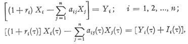 unde Ii (t) reprezinta investitiile pentru dezvoltarea productiei in perioada t. Pentru a tine seama de import, modelele matematice input-output isi modifica structura astfel: