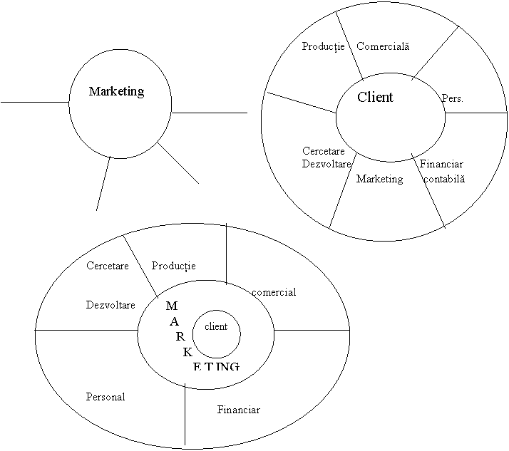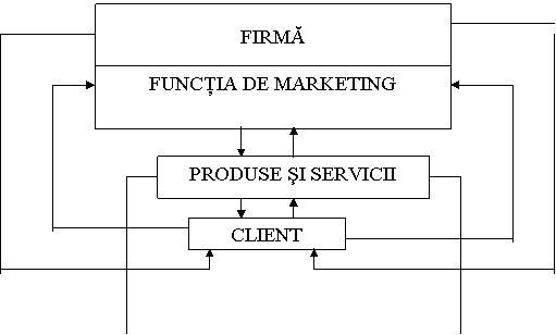 Se poate afirma ca marketingul reprezinta acea functie a firmei (fig.1.1.) care identifica nevoile si cerintele clientilor, determina pietele care pot fi deservite cel mai bine, impun produse, servicii si programe adecvate deservirii acestor piete. Totusi marketingul nu se rezuma la a fi doar o simpla functie aparte ci el definste de fapt o intreaga filozofie care calauzeste intreaga organizatie. Scopul activitatii de marketing este de a-i satisface pe clienti intr-un mod profitabil, prin realizarea unor legaturi avantajoase cu acestia. Personalul de marketing nu poate atinge acest scop de unul singur ci trebuie sa colaboreze cu alte categorii de personal din cadrul firmei, cu alte organizatii, pentru a oferi clientilor produse si servicii de o valoare superioara. In consecinta, fiecare angajat este chemat sa se puna in locul clientului si sa faca tot ceea ce-i sta in putinta pentru a contribui la creearea unei oferte superioare si la satisfacerea in cel mai inalt grad a clientului.