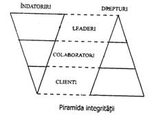 Integritatea nu este atat ceea ce facem cat ceea ce simtim. Iar ceea ce simtim determina ceea ce facem. Proba de foc a integritatii este credibilitatea. Imaginea leaderilor este ceea ce cred oamenii ca sunt in realitate acesti conducatori. Secretul evolutiei fara involutie este integritatea deoarece aceasta se cladeste pe incredere care presupune: mare putere de influenta, idealuri inalte, reputatie solida, o scara a drepturilor si indatoririlor: