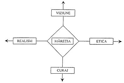 Un lider trebuie sa se caracterizez prin maretie. Peter Koestenbaum arata ca exista patru moduri de a exprima maretia in gandire si actiune: viziunea (presupunand facultatea de a distinge cea mai larga perspectiva); realismul (supunerea inaintea faptelor si respingerea iluziilor); etica (exprima atentia acordata celorlalti) si curajul (actiunea de a te expune, de a fi perseverent in ceea ce faci).