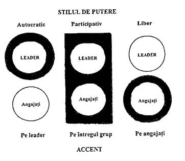 a) stilul autocratic /autoritar - este utilizat atunci cand liderul comunica angajatilor care sunt asteptarile cu privire la efectuarea sarcinilor, fara a cere parerea acestora; este adecvat atunci cand exista toate informatiile necesare pentru rezolvarea problemelor, nu este destul timp pentru consultare si angajatii sunt bine motivati;