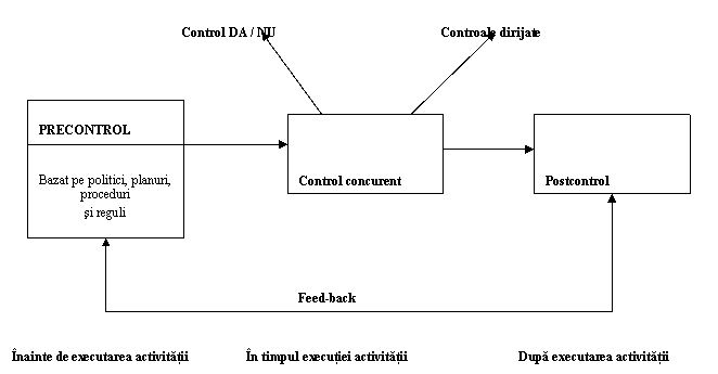 Acestea mai sunt cunoscute drept: control preventiv, control concurent si control feedback. (vezi fig. nr. 2)