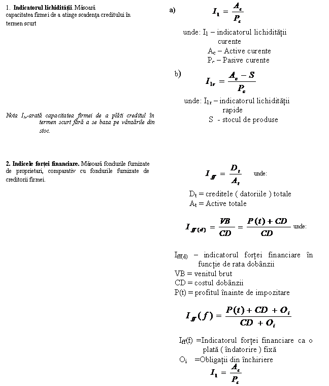 Tabel nr.4. Unii indicatori (rapoarte) cheie care pot fi folositi |