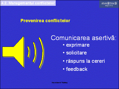 Uneori, o solicitare din partea noastra poate declansa un conflict, fiind perceputa ca o solicitare impusa sau nefundamentata. Putem preveni un conflict de aceasta natura daca explicam motivele pentru care facem aceasta cerere si discutam cu cel solicitat despre modalitatile si resursele pe care le implica rezolvarea.