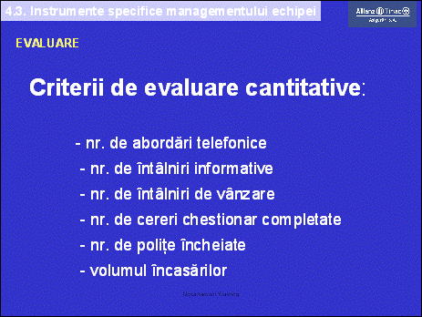 In aceasta sectiune vom discuta despre cateva instrumente pe care le poate folosi UM in conducerea echipei sale: delegare, coaching si evaluarea performantelor.