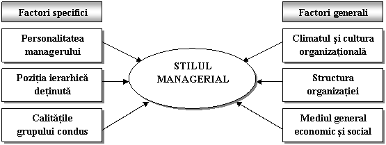 Studiul stilurilor manageriale inseamna abordarea acestora sub impactul produs si de alte variabile de influenta, asa cum rezulta din figura 6.1. In categoria factorilor specifici, pe linga trasaturile de personalitate ale managerului sunt mentionate pozitia ierarhica detinuta si caracteristicile grupului condus. Pozitia ierarhica determina o anumita putere sau o capacitate de a influenta pe altii, fiind cunoscut ca managerii de la nivelele ierarhice superioare au, de obicei, mai multa putere decit cei aflati pe nivelele inferioare. Retinem ca nevoia de putere este valoroasa cita vreme nu constituie, asa cum arata unele cercetari ale psihologilor, expresia nevrotica a unor slabiciuni (sentimente de inferioritate, privatiuni din copilarie sau lipsa afectiunii).