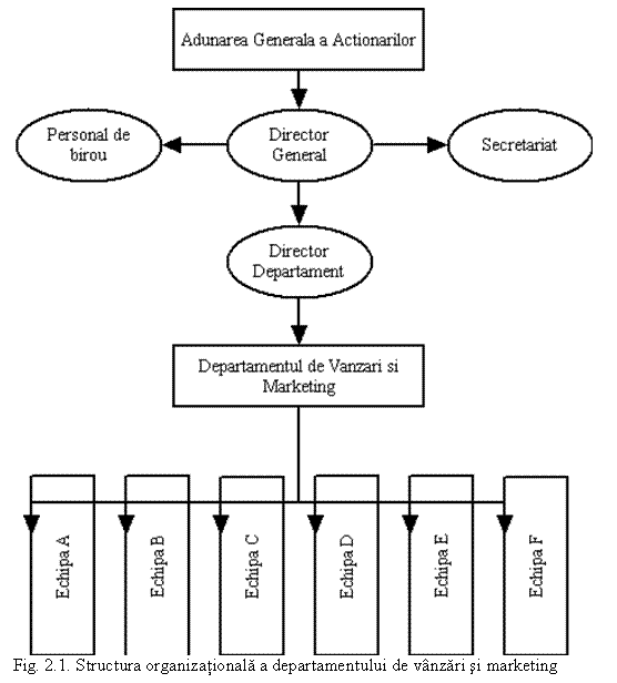 Structura organizationala de care este legat departamentul de vanzari si directorul general este simpla dupa cum se poate vedea in figura 2.1.