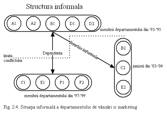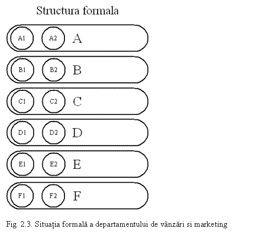 Ceea ce vazusem din imaginile managerului de departament arata ca un departament bazat mai mult pe cunostinte informale, decat pe legaturi ierarhice formale, ce denota faptul ca firma crescuse cu acesti oameni de la o micro firma la o firma medie, iar departamentul de vanzari a crescut impreuna cu mica forta de vanzare formata din prieteni.