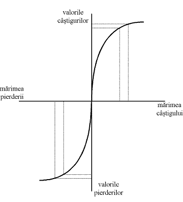 Kahneman si Tversky (1979) pornesc de la teoria utilitatii cardi-nale, oferind o explicatie psihofizica preferintei pentru risc. Ca in cazul orcarui fenomen de perceptie a stimulilor fizici, in evaluarea monetara, experienta subiectiva este o functie concava de marimea schimbarii fizice.