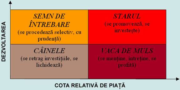 Intreprinderile care comercializeaza mai multe familii sau grupe de produse, opereaza pe segmente de piata diferite sau cu forme de vanzare diferite se afla adesea in situatia de a decide orientarea spre variante viabile, de viitor si renuntarea la solutiile depasite, care au devenit neproductive. Investitiile si resursele financiare vor fi orientate spre domeniile "promitatoare", utilizandu-se veniturile din alte domenii, deocamdata productive, dar fara perspective.