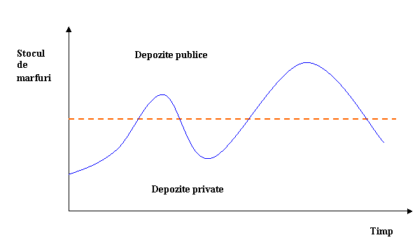 productie sezoniera. Depozitele au rolul de a prelua si pastra produsele pentru o perioada de timp limitata. Stocurile vor permite satisfacerea cererii distribuite de-a lungul anului.