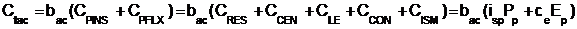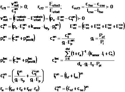 in care: CTAC = cheltuielile totale actualizate pe orizontul de prognoza; bac = binol de actualizare ; CPINS ; CPFLX = cheltuielile de prognoza la nivelul dezvoltarii instalatii lor si respectiv al fluxului scrise pentru nivelurile resurselor (RES) si a interfetei sistem - mediu (ISM); isp; ce = investitia specifica si costul energiei; Pp , Ep = puterea si energia prognozata pe orizontul (t); r = ritmul de crestere; a,b, c = constante ale sistemului.