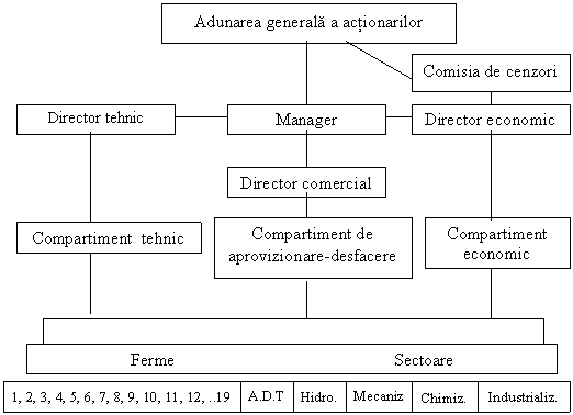 - subdiviziuni de servire tehnica: sector mecanic, sector de chimizare, sector de hidroamelioratii, constructii etc.;