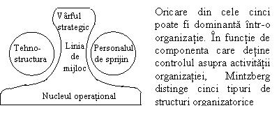 Dintre abordarile teoreticienilor privind problematica structurilor organizatorice, interesanta si cuprinzatoare ni se pare cea a lui Henry Mintzberg, asa-numita "structura in cinci", pe care o prezentam in continuare.