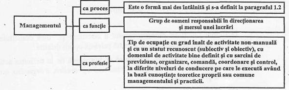 in lucrarea citata mai inainte, managementul este privit ca proces, functie si profesie (fig. 2.1).