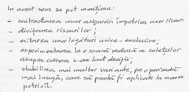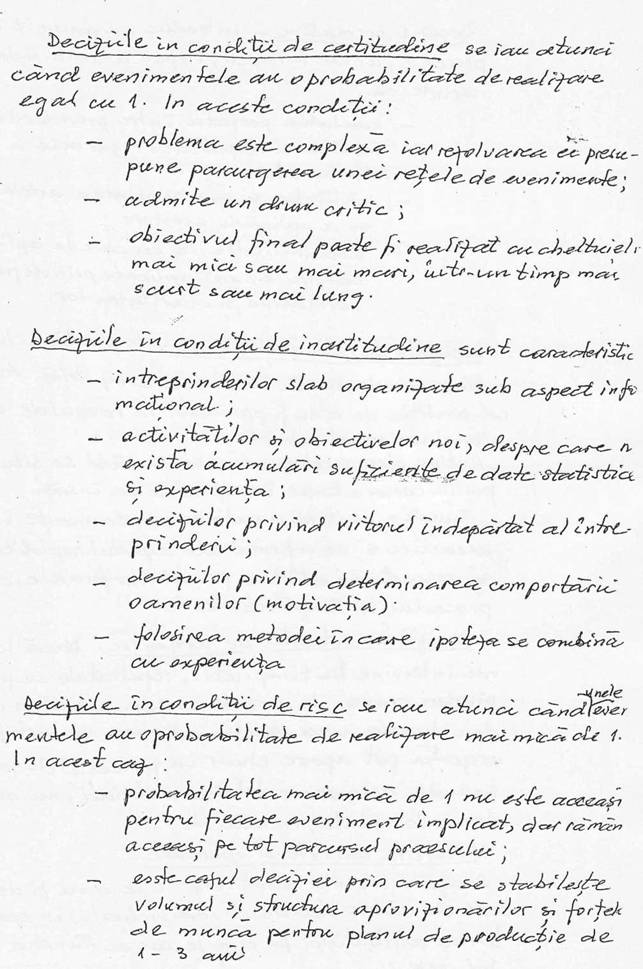 Probabilitatea de realizare a deciziilor este mica, apar evenimente care scapa controlului, iar evolutia lor este dificil de anticipat, dar se poate calcula o probabilitate certa. |