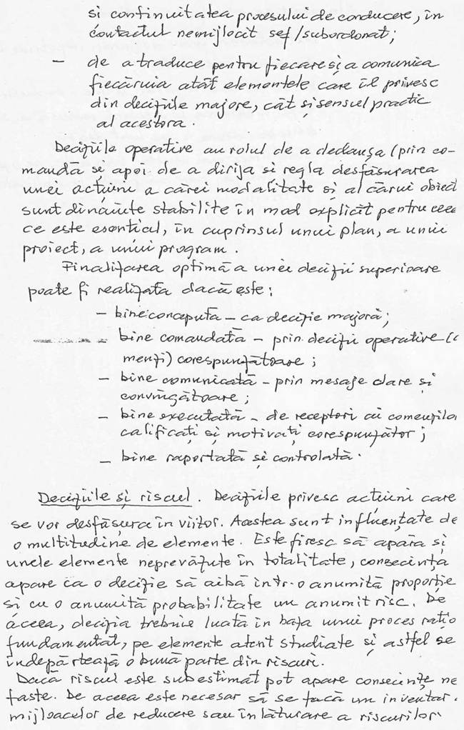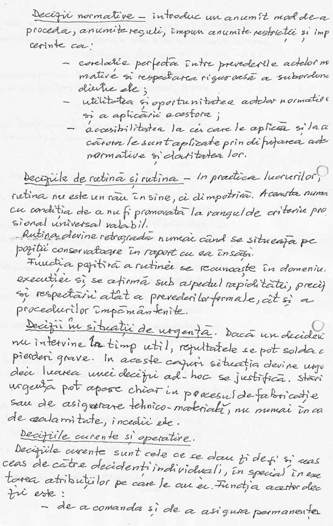 Prin decizie se intelege procesul de selectionare pe baza unor criterii a unui mod de actiune din mai multe variante posibile, cu scopul de a ajunge la telul dorit.