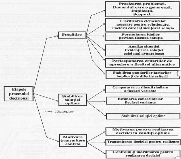 O mai larga concretizare a etapelor procesului managerial, dar si a alternativelor in elaborarea deciziei manageriale este cea din fig. 2.5, care este prelucrata dupa lucrarea |7|.
