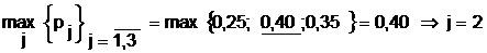 Conform principiului probabilitatii maxime decidentul va alege varianta pentru care avem: